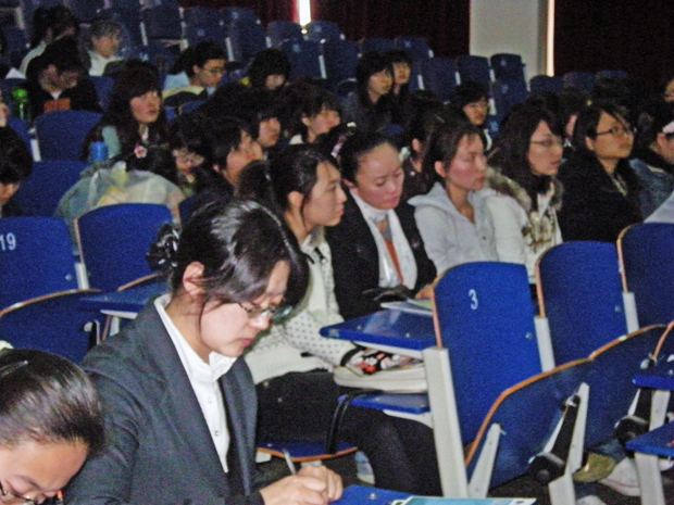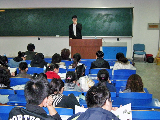 说明会上,创志学园集团驻上海办事处代表介绍了创志学园集团情况,并对留学所需手续以及费用问题进行了详细的说明。