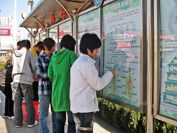 上午9时,参加环保活动的义工自备清扫工具,在开发区五彩城社区门前集合,随后,对五彩城内的建筑物墙壁污渍及各处张贴的野广告进行了清理。义工们还向过往行人发放传单,宣传环保知识,并对人们的咨询做了耐心的讲解。
