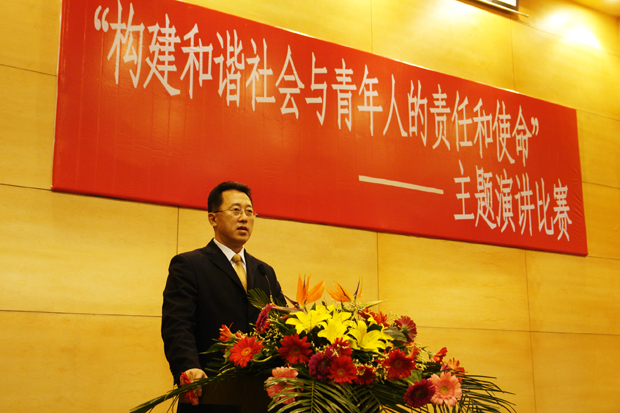 4月28日晚,院图书馆报告厅高朋满座,嘉宾云集,一场引人深思,催人奋进,令人鼓舞的“构建和谐社会与青年人的责任和使命”主题演讲比赛正在进行。