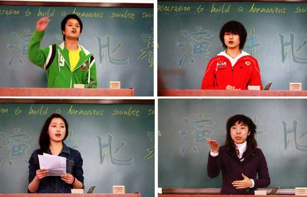 4月24日中午12:30,新闻与公共管理系“构建和谐社会与青年人的责任和使命”英语演讲比赛系内选拔赛在教学楼1109教室举行,共15名选手参加了比赛。外国语学院英语教师田丽、夏珍、史金蝉和林萌担任本次比赛的评委。新闻与公共管理系主任艾长征教授和同学们一起观看了比赛。