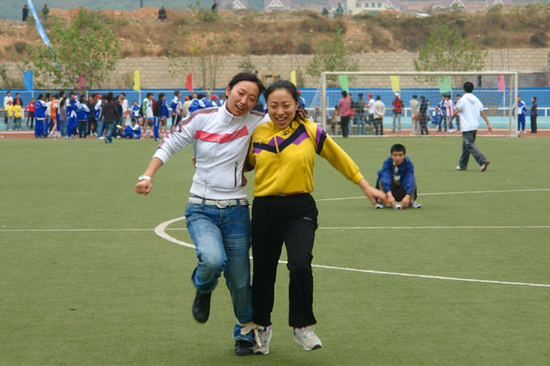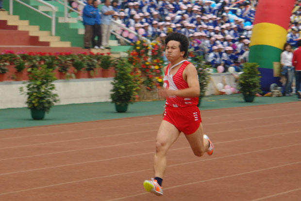 赛场上运动健儿们奋力拼搏,争创佳绩;看台上同学们群情高涨,呐喊助威,嘹亮的锣鼓声、加油呐喊声充满整个运动场。组委会在比赛间歇还安排了运动会献歌与精彩的健美操表演。悠扬的歌声,优美的舞姿,嘹亮的呐喊汇聚在一起将运动场变成了欢乐的海洋。