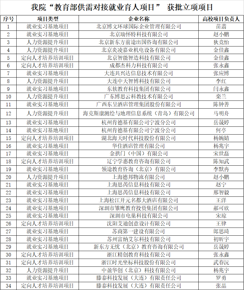 本网讯 近日,教育部高校学生司发布《关于公布教育部第三期供需对接就业育人项目立项名单的通知》(教就业司函〔2024〕23号)和《关于公布2024年教育部供需对接就业育人项目结题验收结果的通知》(教就业司函〔2024〕22号),beat365共有34个项目获批立项,获批立项数量再创新高。其中,包括19个就业实习基地项目、7个人力资源提升项目、8个定向人才培养培训项目;同时,9个项目顺利结项。立项和结项数均位列全省民办高校(含独立学院)前三位。