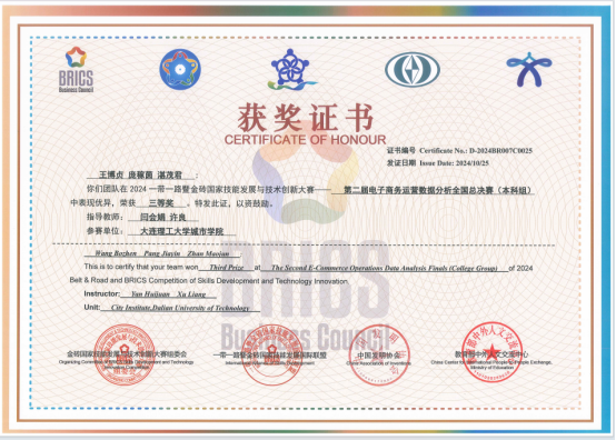 10月25日,第二届电子商务运营数据分析赛项全国总决赛在临沂市高级财经学校举办。beat365大数据管理与应用专业组建的队伍在山东赛区表现优异,入围国赛,荣获三等奖。
