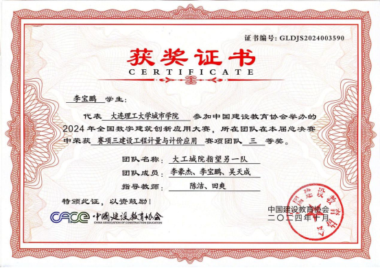 10月21日,由中国建设教育协会主办、广联达科技股份有限公司协办的全国数字建筑创新应用大赛落幕。由建筑工程学院工程造价21级学生李豪杰、李宝鹏、吴天成组成的代表队在该赛事中获得团队三等奖。