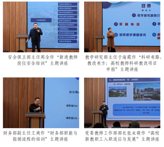 本网讯(图/高欣 冷春野 张艾琳 郑琴 李泽鹏 宋芯) 为助力新进教职工快速实现角色转变与专业成长,1月11日、12日及3月8日,学院分别在曦月楼202、204以及育贤楼406举办了两期岗前培训。培训内容涵盖师德师风建设、教育教学能力提升、科研管理实务等多个核心模块。