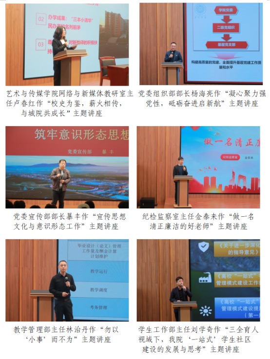 3月8日,第二期培训以校史教育开篇,邀请9位职能部门负责人为新进教职工解读各部门的职能、制度以及工作流程,帮助新教师全景式了解学院治理体系,以更好地开展教育教学工作。
