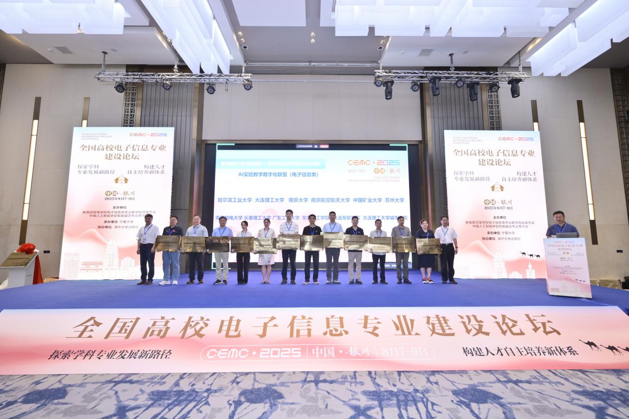 本网讯为深入贯彻国家教育强国战略部署,加快构建高质量教育体系,8月8日,在教育部高等学校电子信息类专业教学指导委员会(电子信息教指委)和教育部《实验教学数字化及个性化评价体系》共同体的联合发起下,“AI实验教学数字化联盟(电子信息类)”在银川隆重举行成立仪式。四位院士及二十三位电子信息教指委委员、200余所高校,400余位电子信息相关专业院校领导、骨干教师共同见证了这一重要时刻。