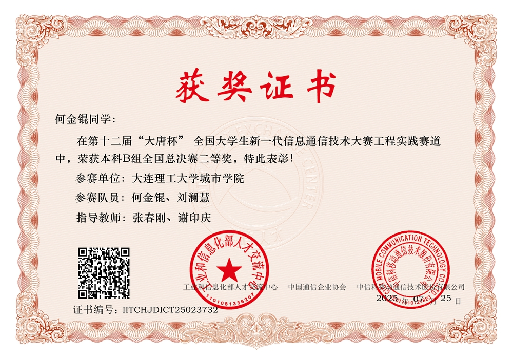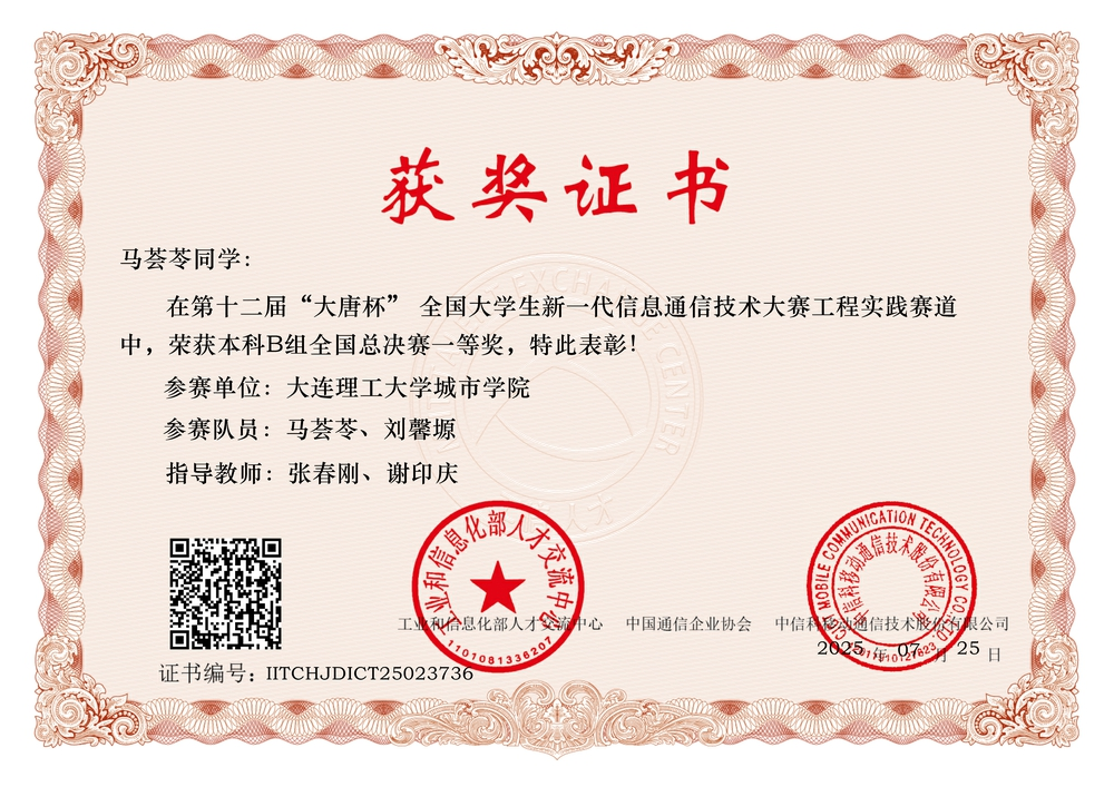 “大唐杯”大赛由工业和信息化部人才交流中心、中国通信企业协会等单位主办,已纳入教育部高校竞赛排行榜,是推动信息通信技术产教融合、培养创新型人才的重要平台。