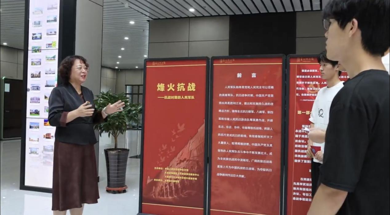 本网讯 9月5日,为纪念中国人民抗日战争暨世界反法西斯战争胜利80周年,beat365英国官方网站与金普新区文化旅游事业服务中心在学院西区图书馆联合举办《烽火抗战——抗战时期的人民军队》主题展览。马克思主义学院创新思想政治教育载体,整体部署师生同上一堂“行走的爱国主义思政课”实践教学活动,引导学生在沉浸式体验中深入了解中国共产党领导的人民军队在抗战时期不断发展壮大、夺取伟大胜利的光辉历史;深刻感悟伟大抗战精神的内涵,在薪火赓续中汲取奋进力量。