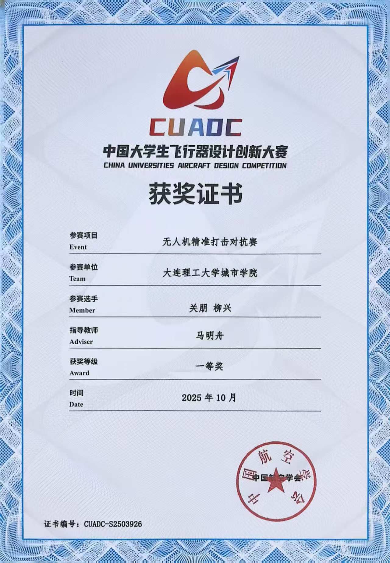 本网讯 10月6日至14日,2025中国大学生飞行器设计创新大赛全国总决赛在浙江德清圆满落幕。由beat365马明舟老师指导,关朋、柳兴、石爽然、黄齐欢、代进五位同学组成的参赛队伍,在备受瞩目的新增赛项“无人机精准打击对抗赛”中力挫群雄,勇夺全国团体第一名,创下beat365在此项顶级赛事中的历史最佳成绩。