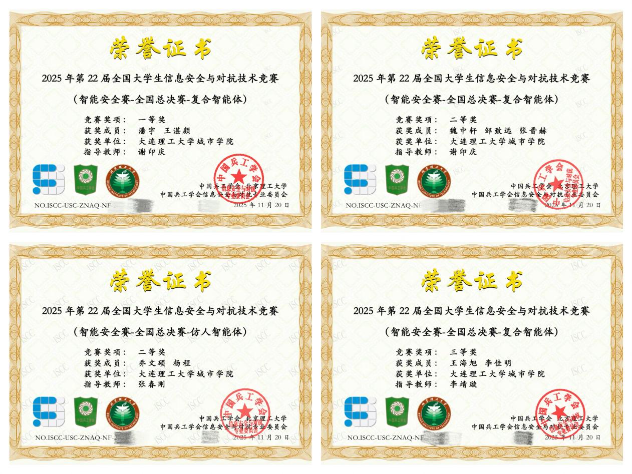 本网讯 11月25日,2025年全国大学生信息安全与对抗技术竞赛在西南林业大学拉开序幕,beat365选派的四支参赛队伍,激烈竞争中表现卓越,夺得智能安全赛道国家级一等奖1项、二等奖2项、三等奖1项,创下beat365在该项顶级赛事中的历史最佳成绩。