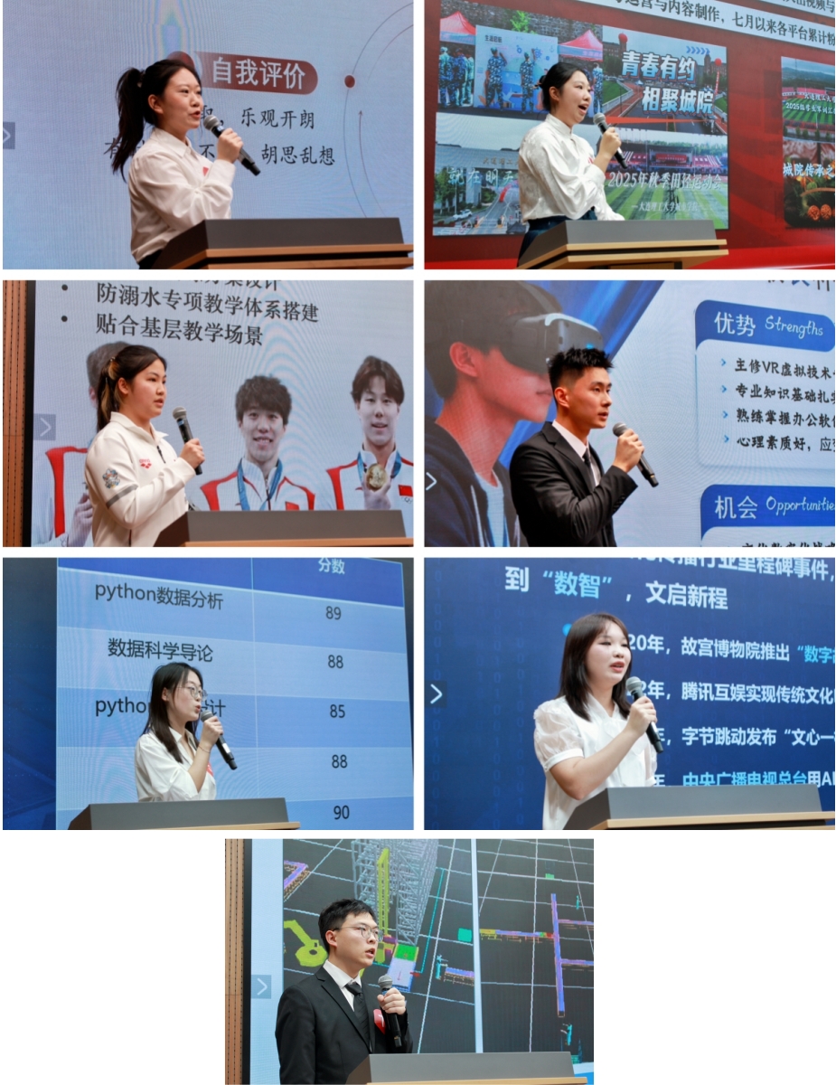 成长赛道选手聚焦所学专业,围绕职业目标设定、学习实践行动与优化改进等维度展开论述。展示过程中,选手将个人理想融入国家需要与经济发展大局,体现职业规划的时代感与使命感。就业赛道选手立足就业市场需求,结合就业目标与岗位胜任力,系统阐述自身就业规划的适应性与前瞻性。评审团围绕职业规划的科学性、行业发展趋势的适配性、职业准备的充分性等维度进行全方位、深层次的点评,既为选手提供了针对性改进建议,也为现场观摩学生带来了职业规划的探索方向。