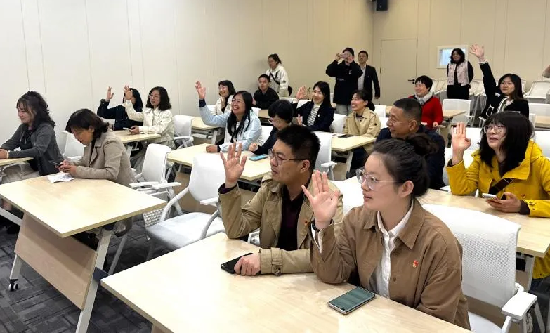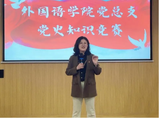 参观结束后,外国语学院党总支书记赵宁主持开展了党史知识问答环节。竞答题目涵盖了党史教育、金州古城等多个方面的内容,既有基础知识,也有深度思考。在紧张激烈的问答环节中,大家充分展现了自己的党史知识储备和应变能力,展现出了党员同志们扎实的理论功底和良好的精神风貌。