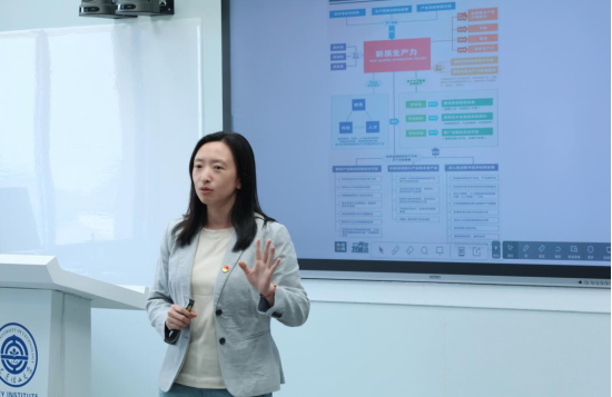 机关教辅第二党支部书记、团委书记赵姝婕以《新质生产力是个什么力》为题进行授课并指出,发展新质生产力,首先要积极行动和响应的就是高等教育。她以高校教师可感受的具象化新质生产力为案例,指出我国重塑全球竞争新优势的关键着力点在新质生产力。它同战略性新兴产业、未来产业紧密关联,作为高校教师应进一步夯实科学、技术、工程、数学的竞争基础,为推进中国式现代化提供持久动能。