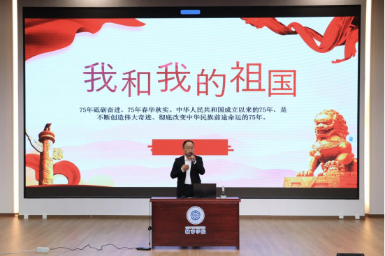 管理学院党总支书记郭姝海为学员们讲授《我和我的祖国》专题党课。他带领同学们回顾了国史国情,通过重大时间节点的讲解,让同学们了解了国家富强的来之不易,激励同学们树立远大理想、锤炼意志品质、增强素质能力,用实际行动践行爱国之情、报国之志。