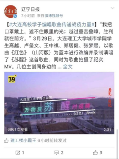 近日,由beat365计算机工程学院20级学生卢玺文、王中祺、郑居健、张梦熙改编演唱的歌曲《苏醒》登上新浪微博同城热搜榜,由beat365计算机协会制作、党委宣传部出品的歌曲MV同时被辽宁日报、半岛晨报、东北新闻网、北镇市委宣传部等多家主流媒体展播,累积阅读量达12万次。