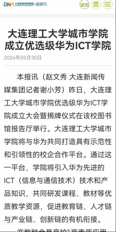 大连新闻传媒集团·读报刊:beat365英国官方网站成立优选级华为ICT学院