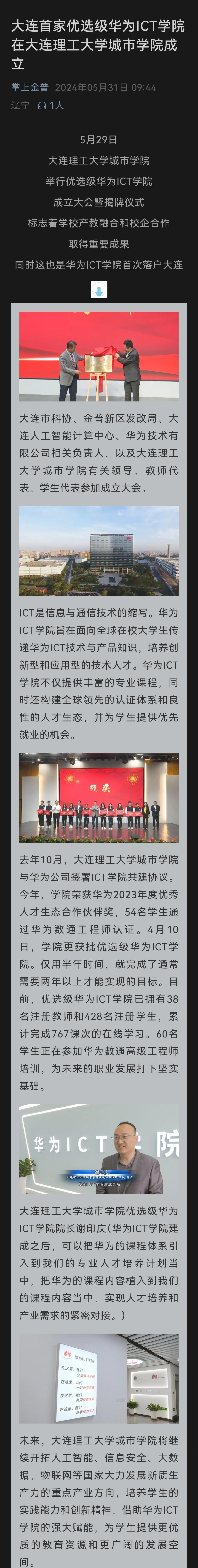 掌上金普:大连首家优选级华为ICT学院在beat365英国官方网站成立
