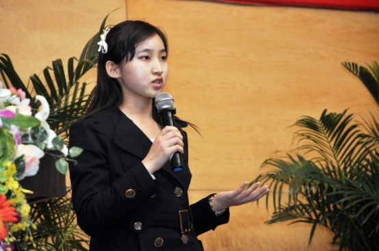 在微软全球副总裁瓦赫•托罗西安来学院演讲会上,简雅楠谈获奖项目及感受。钱浩飞摄