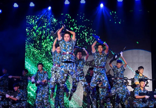 建筑工程学院选送的作品《脚步》,把方向同样选择在了军旅题材上。演员们整齐的步伐时缓时急,变幻的队形此起彼伏,时而变成冲锋陷阵的三角,时而化成气势浩大的横排,把子弟兵的精气神刻画得惟妙惟肖,淋漓尽致,引起了全场观众的强烈共鸣。