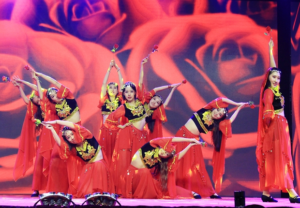 舞蹈《花儿为什么这样红》,充满异域风情的新疆舞蹈优美迷人,是学姐们送给新生最好的礼物。