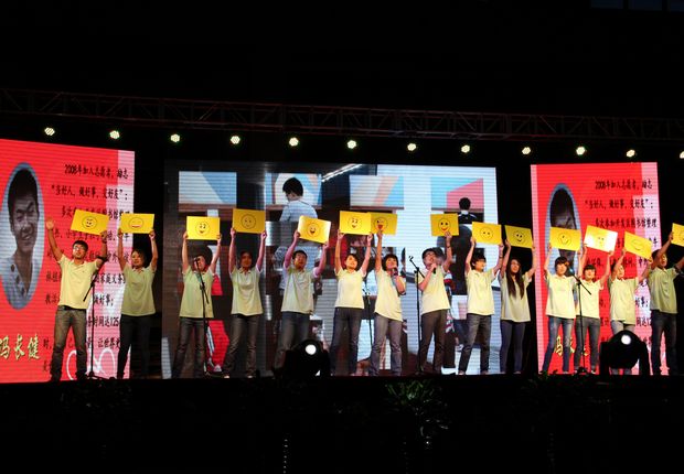 在强劲的音乐声中,由学院大学生艺术团14位男女舞者奉献的名为《Fire Flies》的现代舞火爆登场,拉开了毕业生晚会的大幕,也掀起了本场晚会的第一个高潮;由毕业生高飞、岳佳佳演绎的歌曲《滴答》,以优美的旋律,动人的歌词,仿佛跟随着时间老人把我们又带回四年的过往,时光飞逝,情感依旧;《青春誓言》是由校园媒体联盟毕业生代表呈现给晚会的音诗画,伴随着同学们满怀激情的朗诵,一个个熟悉的名字和面孔在大屏幕上一一闪现:刘胡兰、江姐、董存瑞、雷锋、焦裕禄、王铁人,他们的精神和品格不仅感动和影响着一代代人,也同样拨动着现代大学生的心弦。由学院健美操队表演的啦啦操《炫舞激情》,欢快热烈,激情四射,演绎了青春活力;《在你身边》是由学院青年志愿者协会毕业生代表奉献的志愿者之歌,歌词表现了beat365大学生志愿者自立自强、自信自勉、遇挫愈坚、甘于奉献的崇高精神。而他们手举着的一张张笑脸,则昭示着他们对自己的未来充满了希望和自信;由学院艺术团毕业生代表表演的舞蹈《年年有余》,舞姿曼妙,款款动人,表现了舞者对春华秋实的渴望,对年年有余的喜悦;歌曲《再见》表现了毕业生对母校,对大学生活的依依不舍、依依惜别、难说再见的真挚情感。台上歌者和台下观者遥相呼应,你唱我和,把晚会推向了高潮;由毕业生陈强等10人表演的舞蹈《狼图腾》,以粗犷野性、刚劲有力的舞蹈语言表现了狼的坚忍不拔、锲而不舍、孤傲冷漠和团队配合精神,而胜利就是对这种精神的最好的褒奖;歌曲《二十年后再相会》是六位毕业班辅导教师和他们弟子之间的约定,表达了老师对分别的不舍,对未来的祝福,对20年后再相会的憧憬和期待;《拥抱城院》以日记的形式再现了学生总会毕业生代表四年大学生活中那些难忘的回忆,或高尚、或平凡,有喜悦、有悲伤,说到动情处许多同学潸然泪下,而节目结束时同学们的深情相拥,更是深深感动了在场的每一个人;当结束曲《就在今天》唱响时,六个分院的毕业生代表依次登场,向母校献上了他们精心准备的礼物,表达了毕业生对母校的深深祝福。