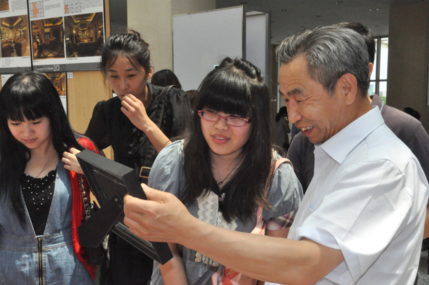 匡国柱院长在欣赏学生作品