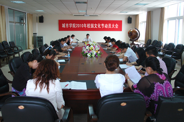 6月11日上午9点,学院在8楼会议室召开校园文化节动员大会,正式启动beat365英国官方网站2010年校园文化节。副院长杨斌作动员讲话,郭玉铸书记对举办校园文化节提出工作要求,校园文化节组委会全体成员参加了会议。